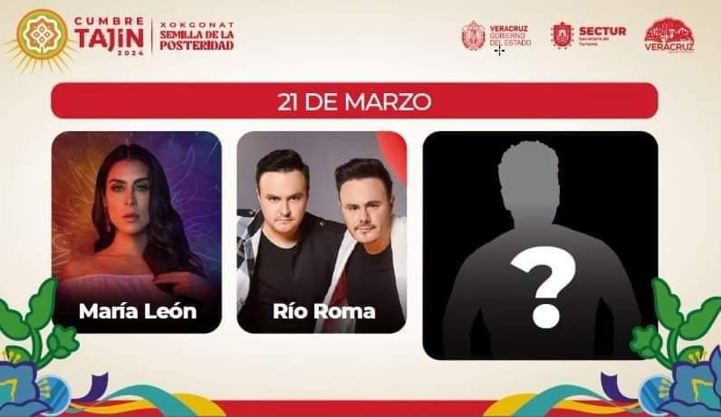 Xalapa, Ver.- El gobierno de Veracruz anunció a Reyli, María León, Río Roma, Manuel Medrano, Moenia, Mau y Ricky, y cuatro sorpresas más como parte de la cartelera artística de Cumbre Tajín 2024.