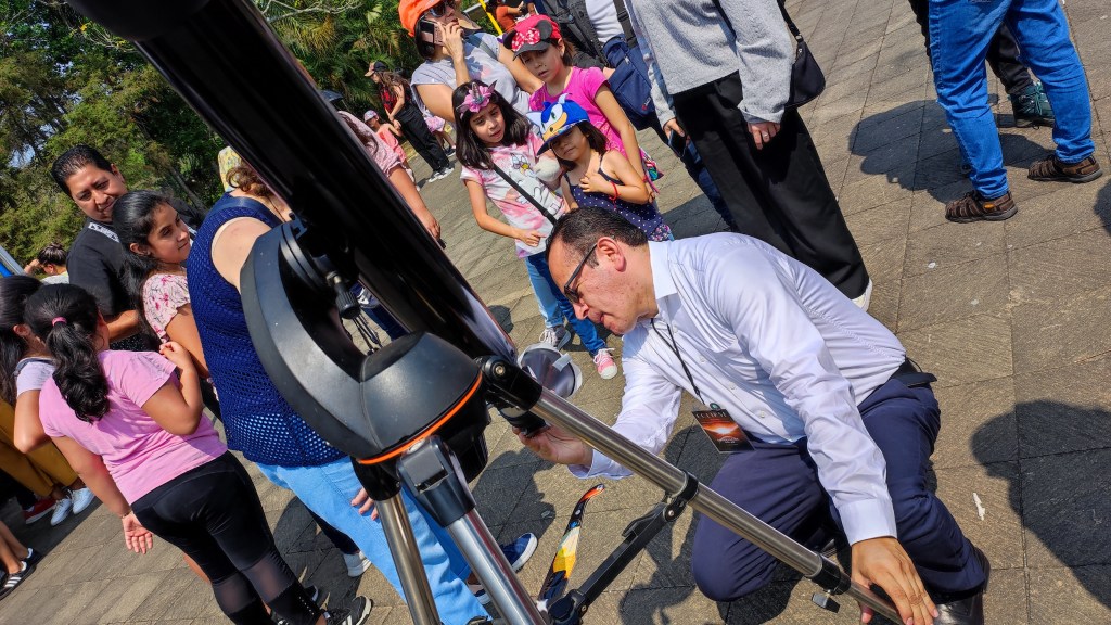 «Venimos porque creo que es la única vez que le va a tocar ahorita que es chiquita, entonces hay que aprovecharlo. Y ella está muy emocionada, esperemos que lo disfrute», explicó Liliana Galindo, quien presenció el eclipse acompañada de su pequeña hija.