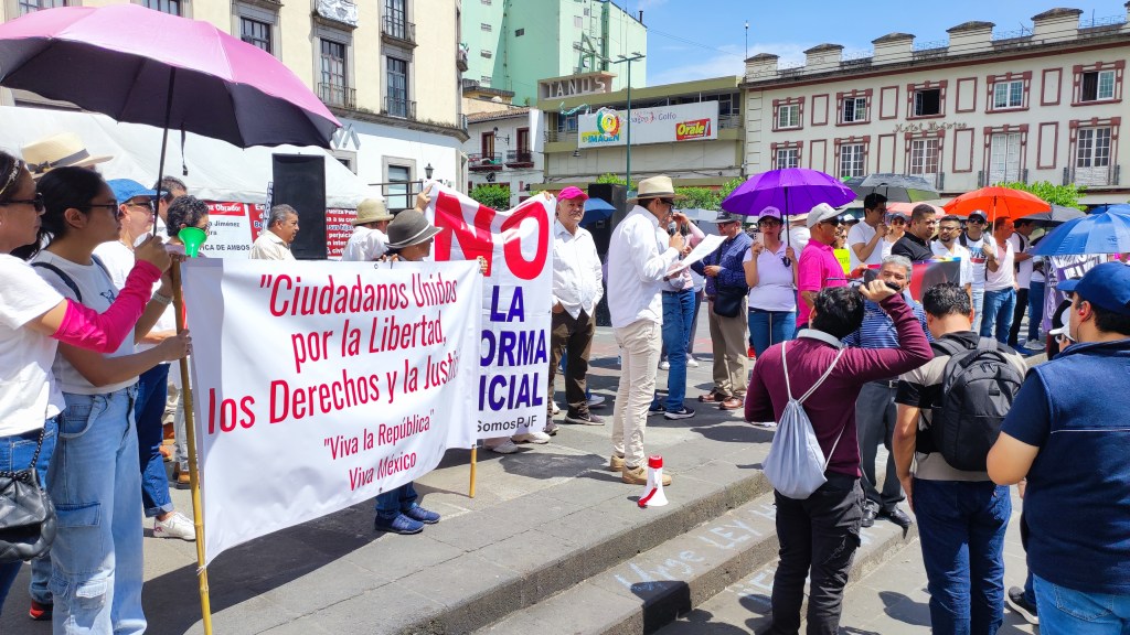Xalapa, Ver.- Ciudadanos y trabajadores del Poder Judicial de la Federación volvieron a marchar por las principales calles de Xalapa para reclamar que el gobierno, ahora encabezado por la presidenta Claudia Sheinbaum, respete la independencia de los poderes.